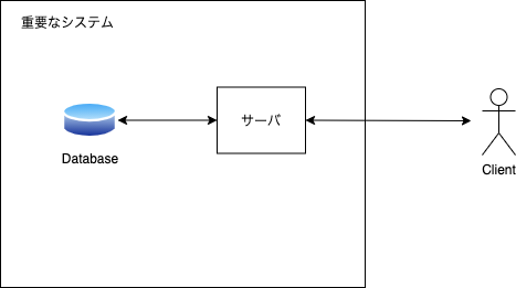ありがちなシステムについて考えてみます。なんか Client がサーバにリクエスト送って、サーバがデータベースに問い合わせして結果をゴニョって Client に返すようなものです。