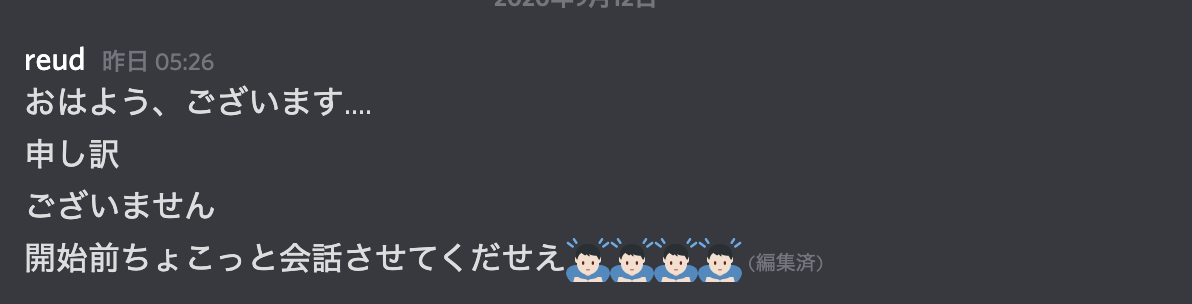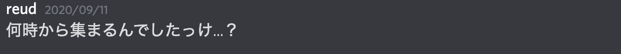 前日夜に打ち合わせしようって話をしていた。しかし集まる時間を忘れてDiscordでチームメンバーに今日何時から?って聞く。
