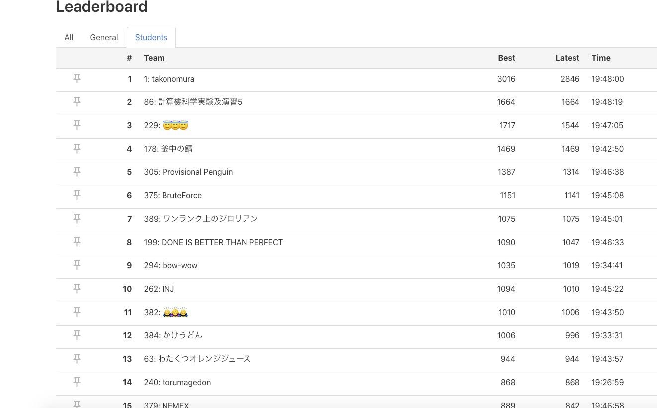 全体 134/468位学生枠 9位 - 弊チーム 1122点
